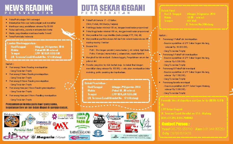 Download brosur 2014 Duta Sekar Gegani and News Reading Competition disini: